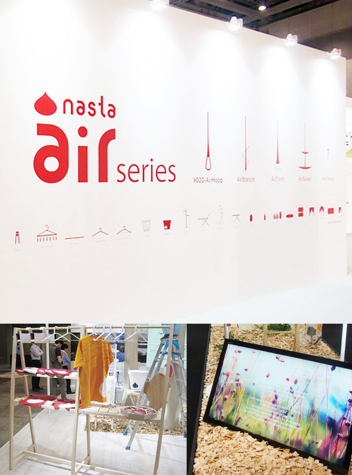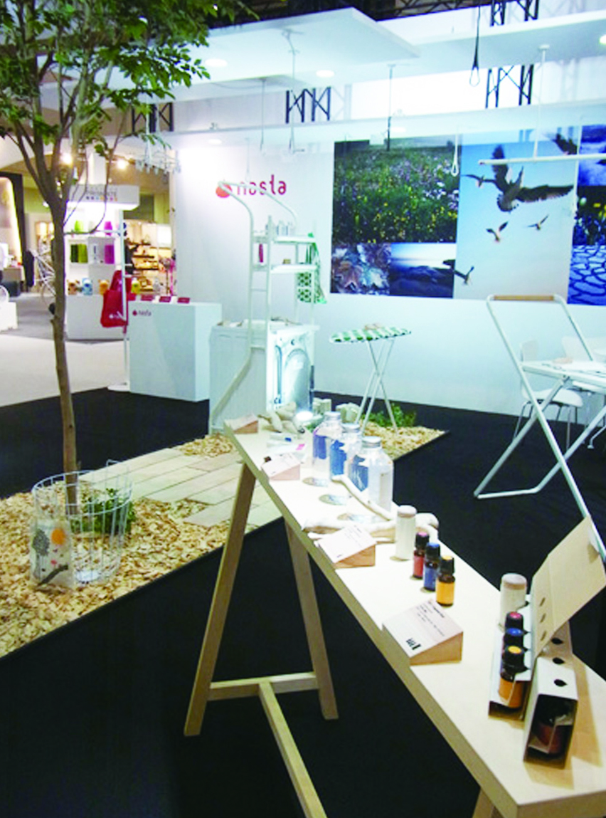 展示品であるnastaの商品は、そんな日常の何気ない「ハレ」のシーンを楽しむ生活のパートナーとして開発された。ブースデザインは、これらのプロダクツデザインのコンセプトと、生活者の「ハレ」な利用シーンをどのように可視化し、表現するかと言う課題に挑み、五感で感じる気持ち良いセンテンスのみをプレーンな色や素材、音等のシンプルで断片的な気配で構成している。