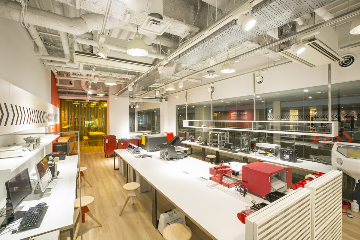 豊富な試作用機器を備え、世界トップクラスのクリエイティビティに対しても十分に対応する事が出来る“まったく新しい教育空間”を実現した。
