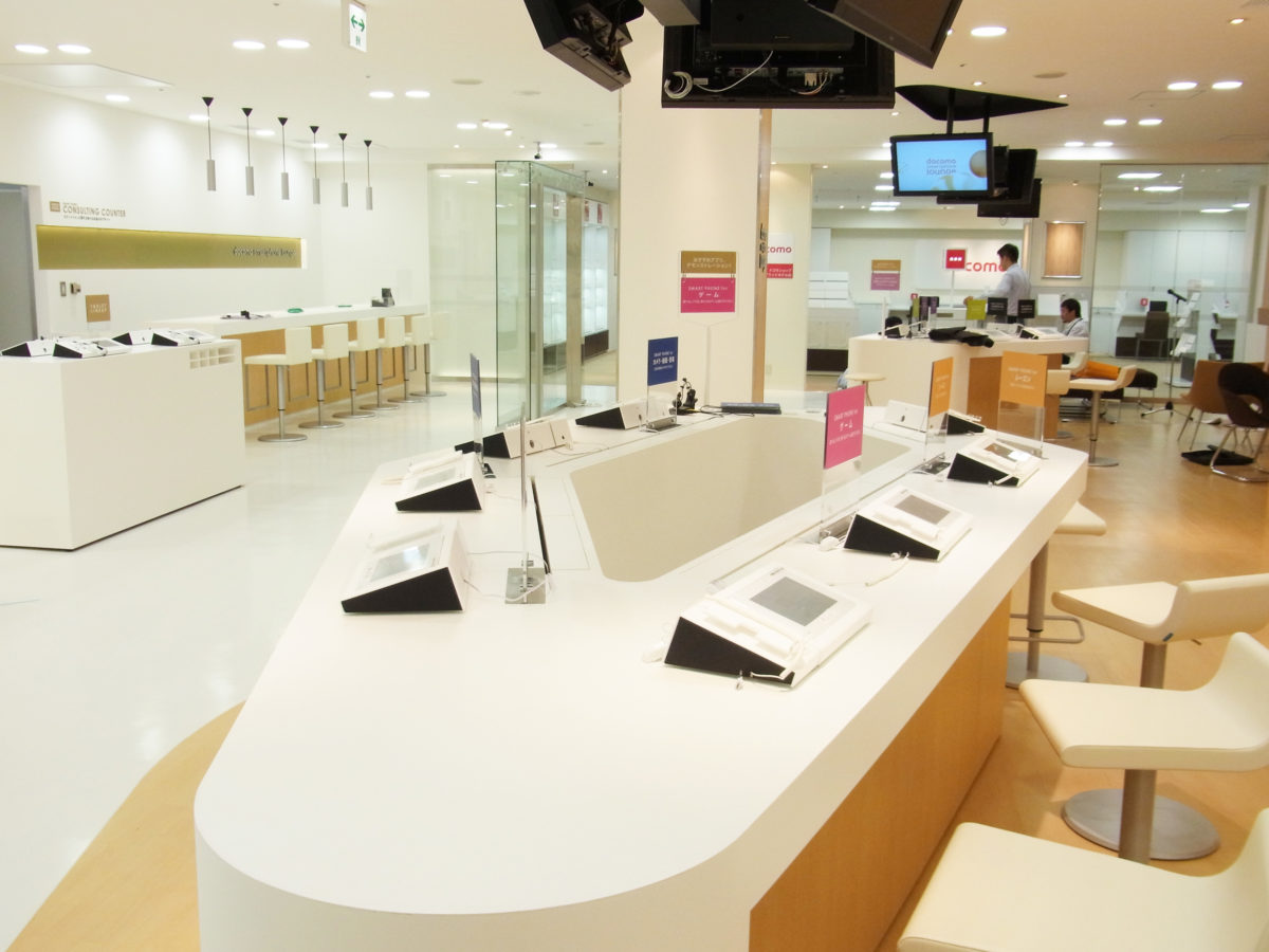 ショップデザインの主軸に捉えたのは“入りたくなる、入りやすい、スマートフォンならではの魅力的なファザード”“ビギナーからエキスパートユーザーまでが楽しめるゾーン構成でありながらも、気軽でハイソな空気感”“奥に位置するdocomoショップへのスムーズな導線計画”の3点。