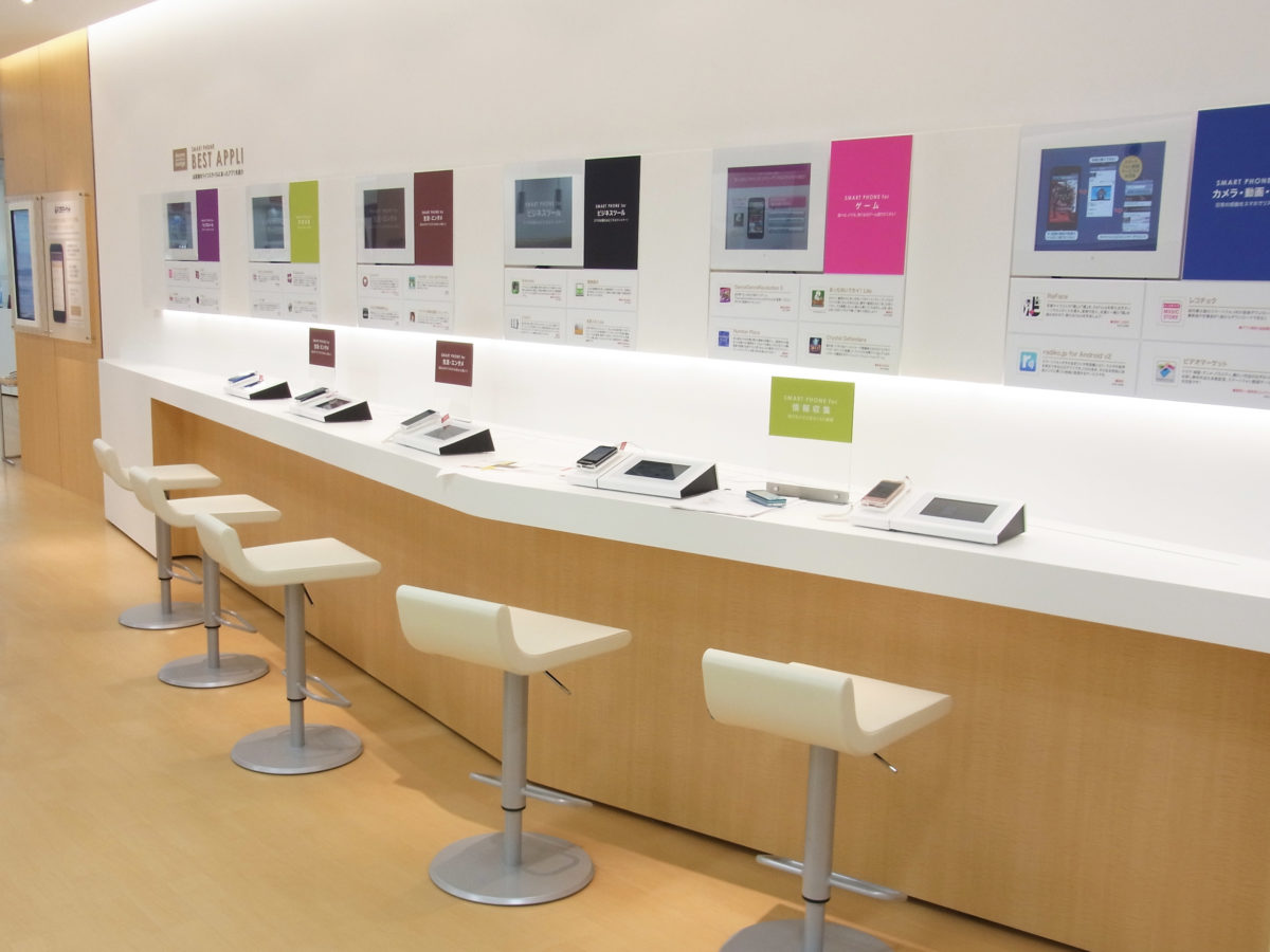 NTT docomo『smartphone lounge 福岡』ショップデザインの主軸に捉えたのは“入りたくなる、入りやすい、スマートフォンならではの魅力的なファザード”“ビギナーからエキスパートユーザーまでが楽しめるゾーン構成でありながらも、気軽でハイソな空気感”“奥に位置するdocomoショップへのスムーズな導線計画”の3点。 ファザードはスマートフォンのスタイリッシュで、プレーンなフェースを思わせるテクスチャー感を出し、店の入口周辺は、ビギナーを意識した展示演出をスタート。奥に進むにつれて、スマートフォンへの理解が深まるレイアウトを演出した。店内に入りやすい仕掛けとして、プレーンで暖かみのある白とメイプル素材をベースに空間構成するとともに、柔らかなカーブを伴った什器レイアウトで散歩路のようなナチュラル感を表現した。 2011年 NTT アド社長賞 受賞